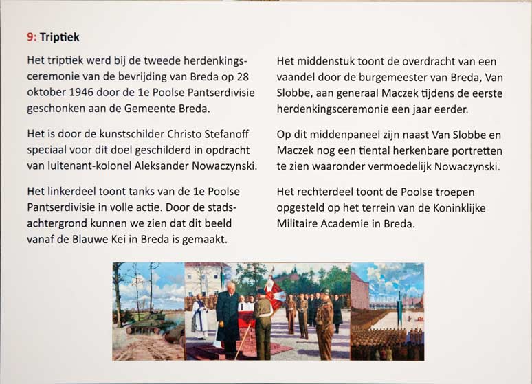 Nadat de bevrijdingsbeweging zoals bekend vastliep op de Moerdijk en Maas werden de Polen in Breda ingekwartierd. Het Ardennenoffensief in december ‘44 en januari ’45 was een laatste, maar gevaarlijke stuiptrekking van de Duitsers. Daarna kon Nederland, waar inmiddels een hongerwinter gaande was, alsnog worden bevrijd. De Poolse eenheden zijn iets oostelijker door Nederland verder getrokken tot aan Groningen toe.